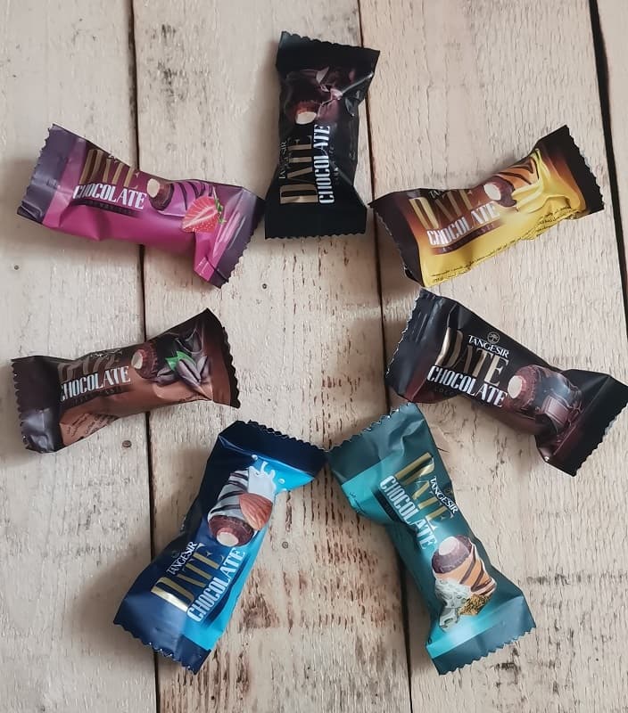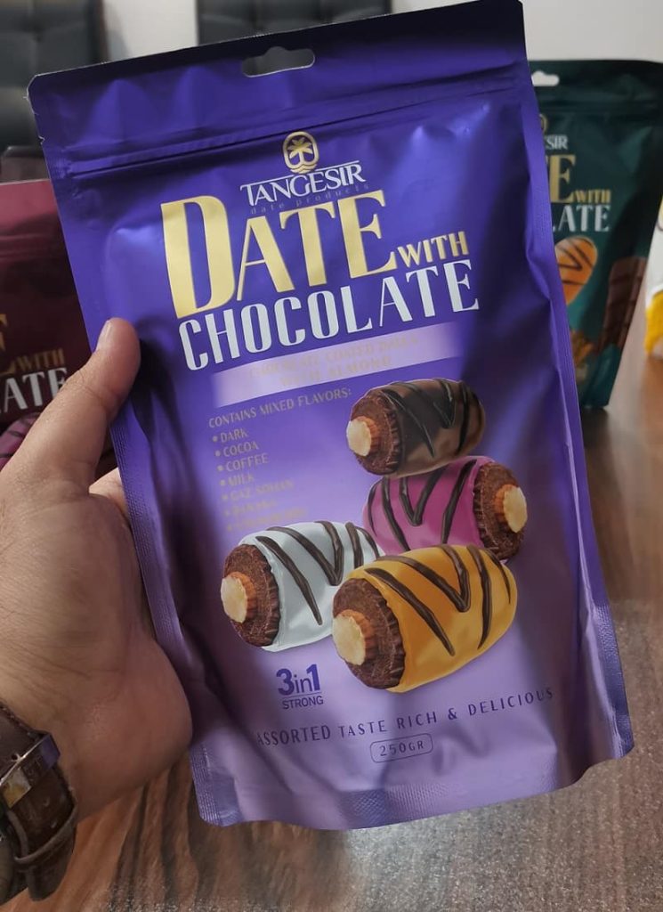 پس ما الان با یک محصول سه بخشی طرف هستیم. یعنی مغز بادام در وسط، خرما در میانه و یک لایه شکلاتی خوشمزه روی خرما که این محصول را از هر لحاظ جذاب کرده است!